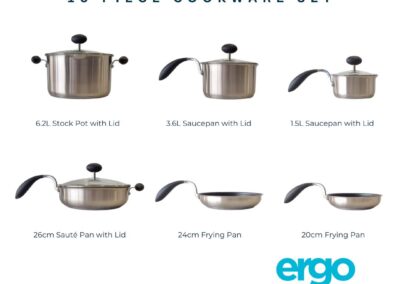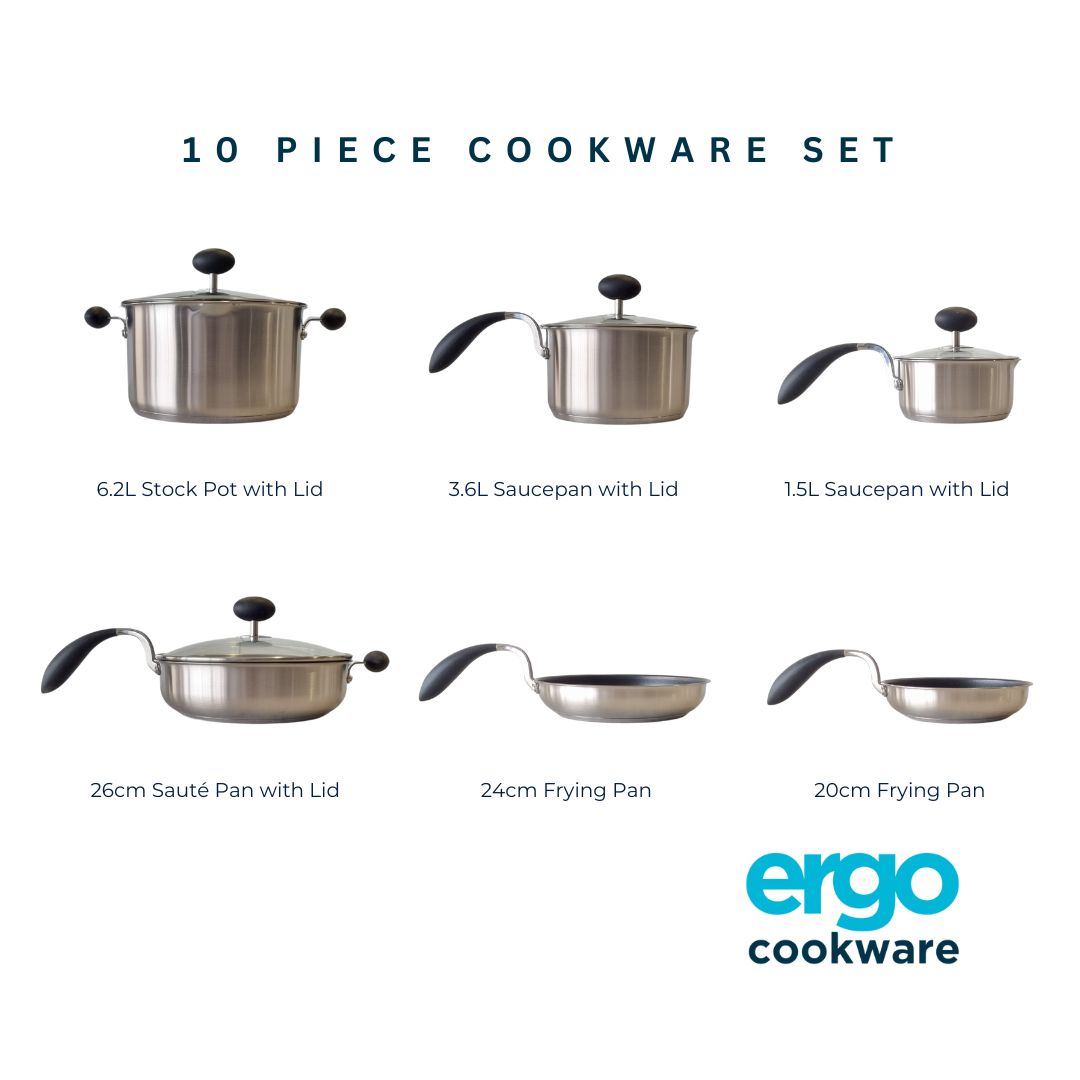 Cook with confidence—whether it’s a quick dinner or a full Sunday roast. The Ergo 10-piece set gives you maximum flexibility, unmatched comfort, and the smart features that make everyday cooking feel effortless.