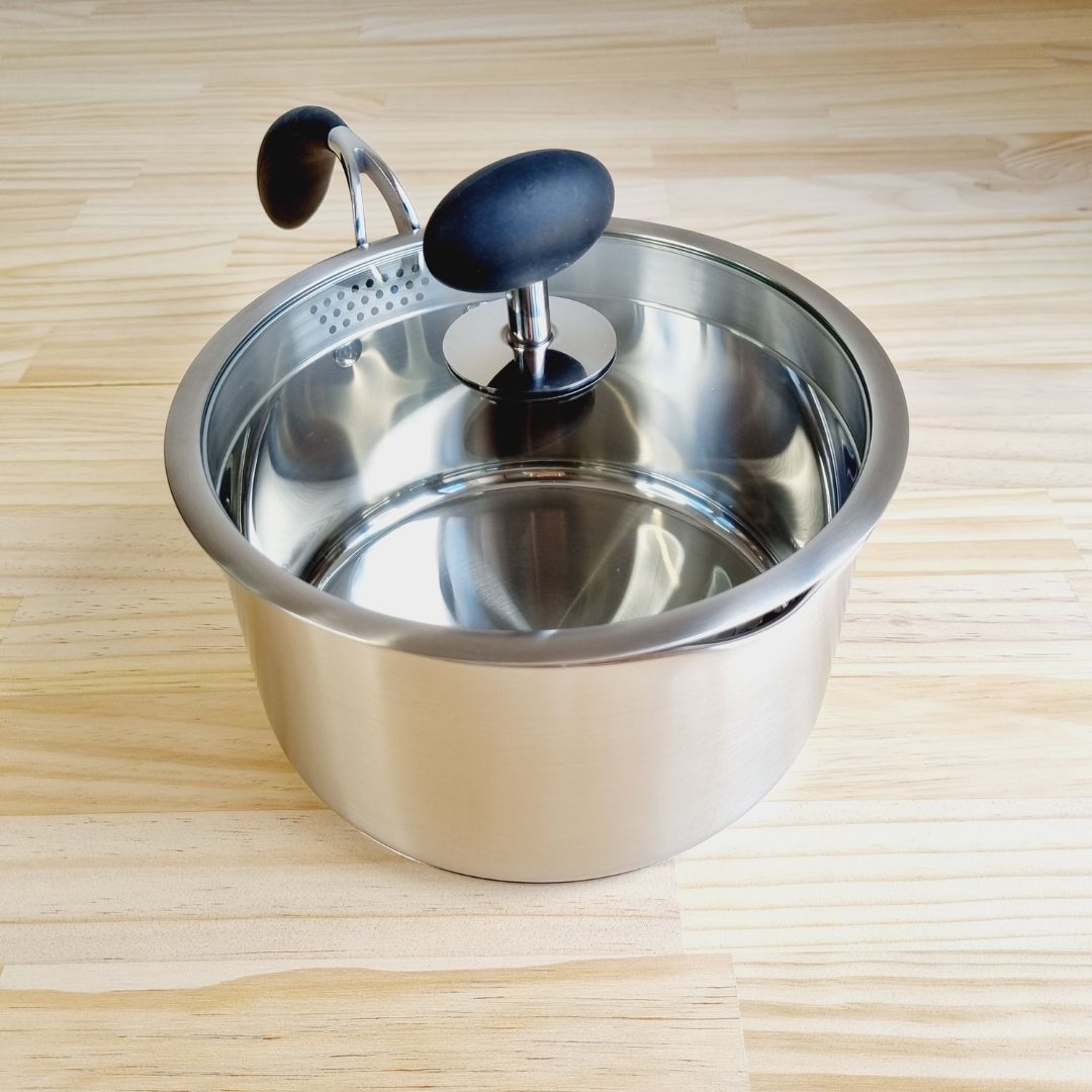 - Lid with built-in strainers and dual drainage holes means no need for a colander—just pour and go