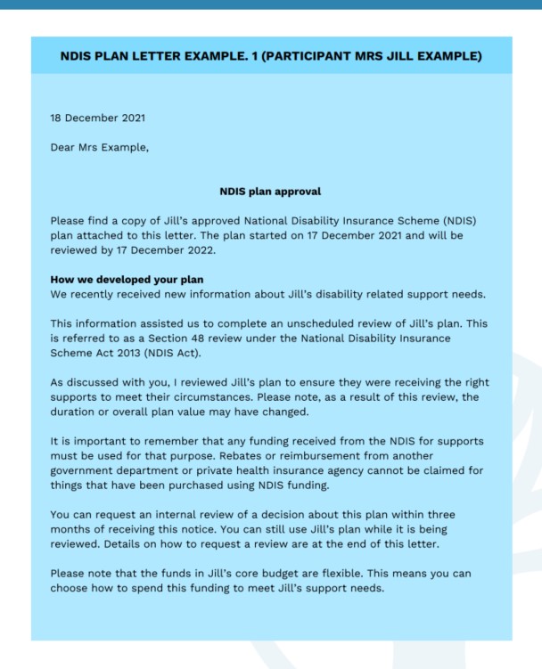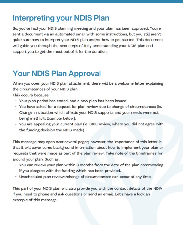 The Interpreting Your NDIS Plan Part 1 guide helps by going through examples of plan letters and discussing key sections.