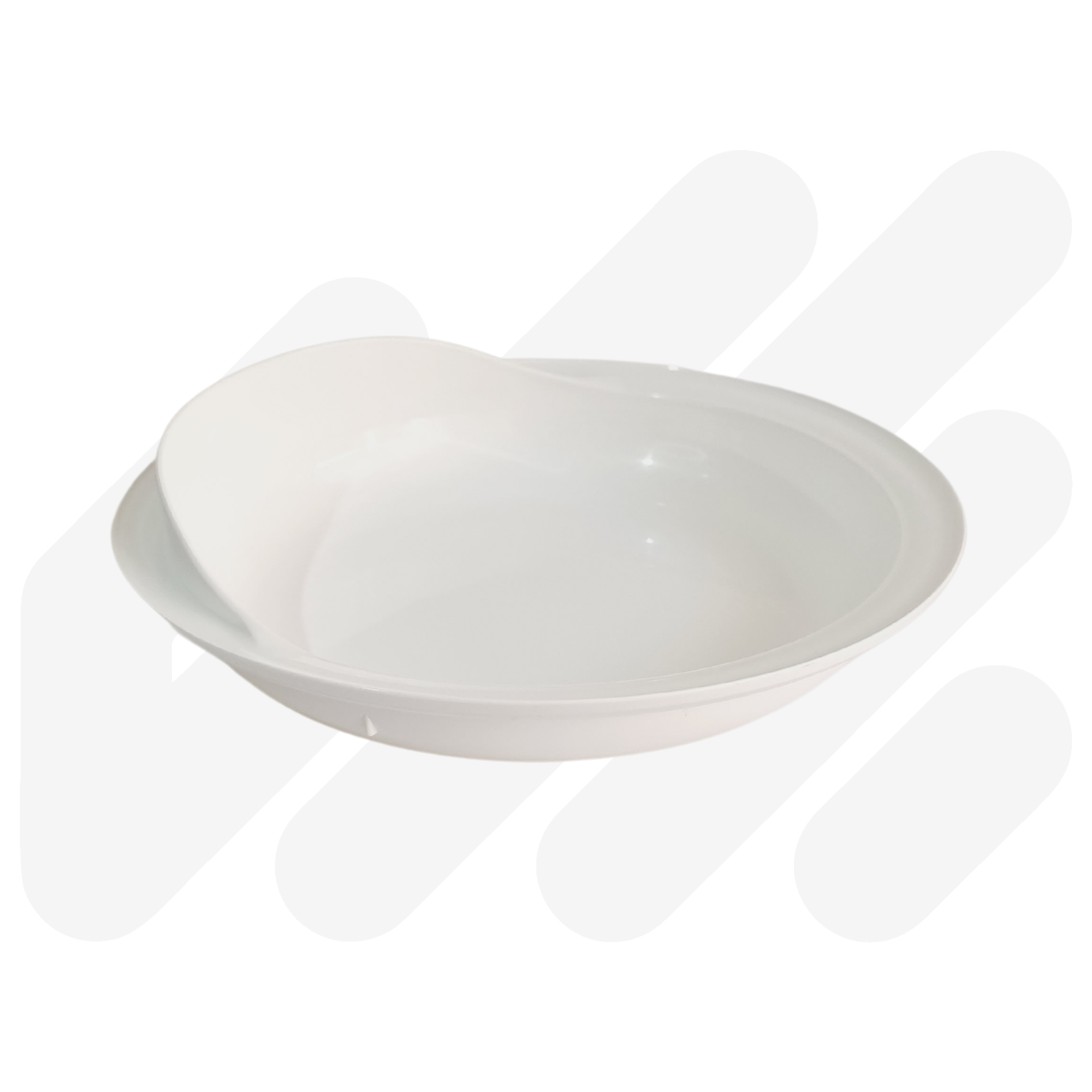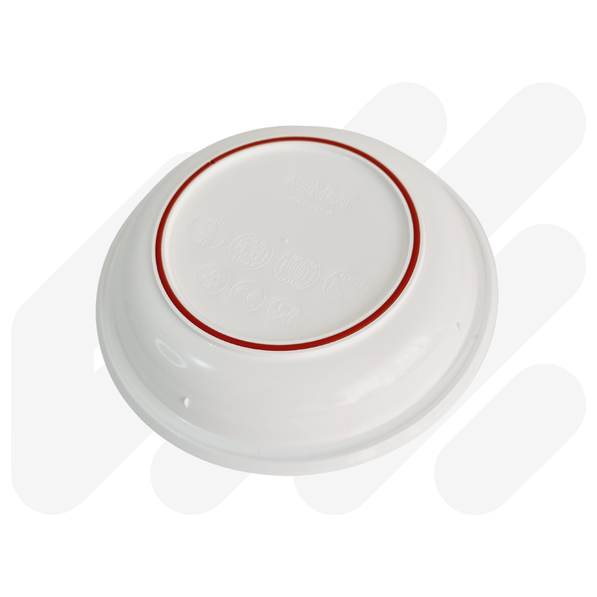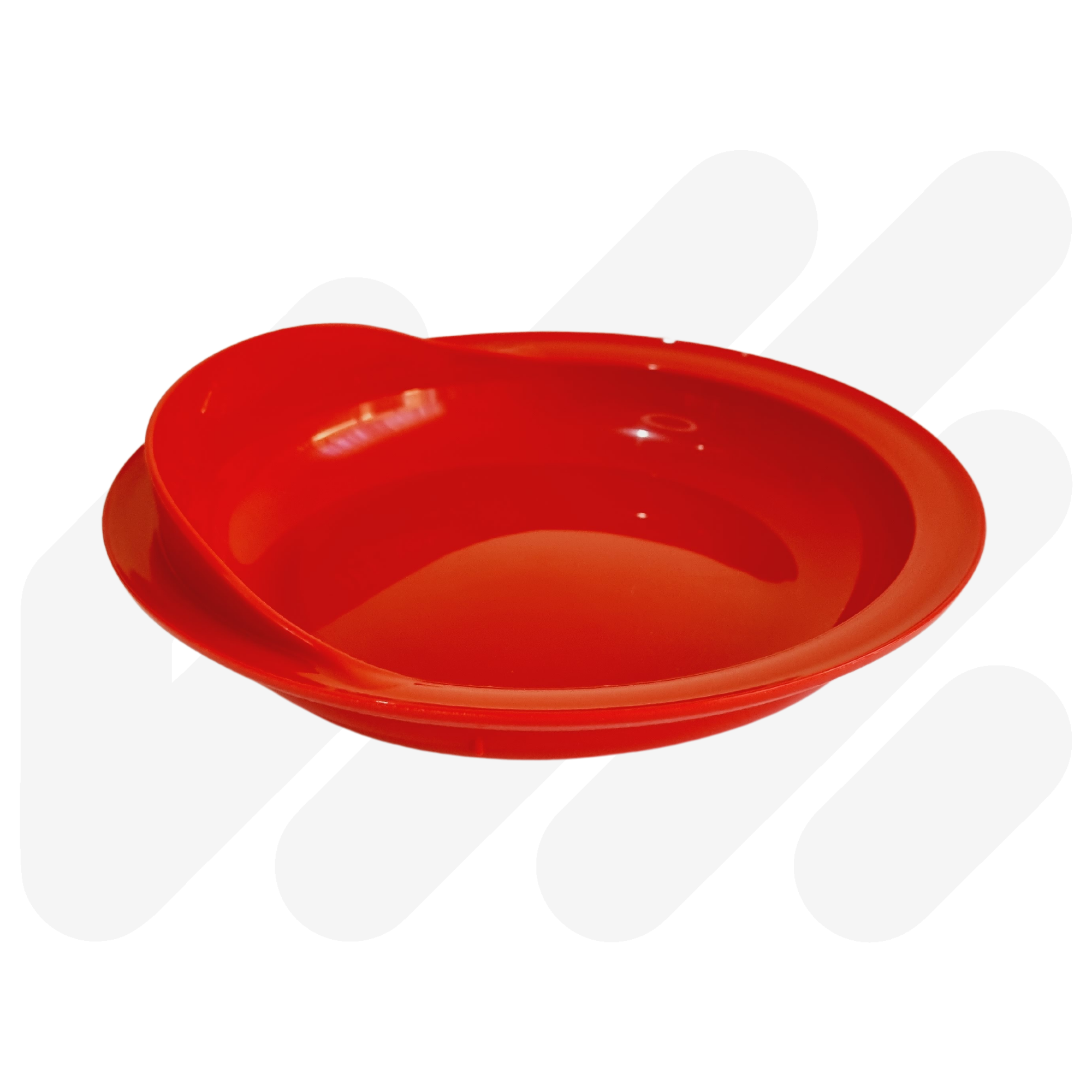 This plate features a high side to assist with scooping up food and also comes with a slip resistant base. Plate is dishwasher and microwave safe.