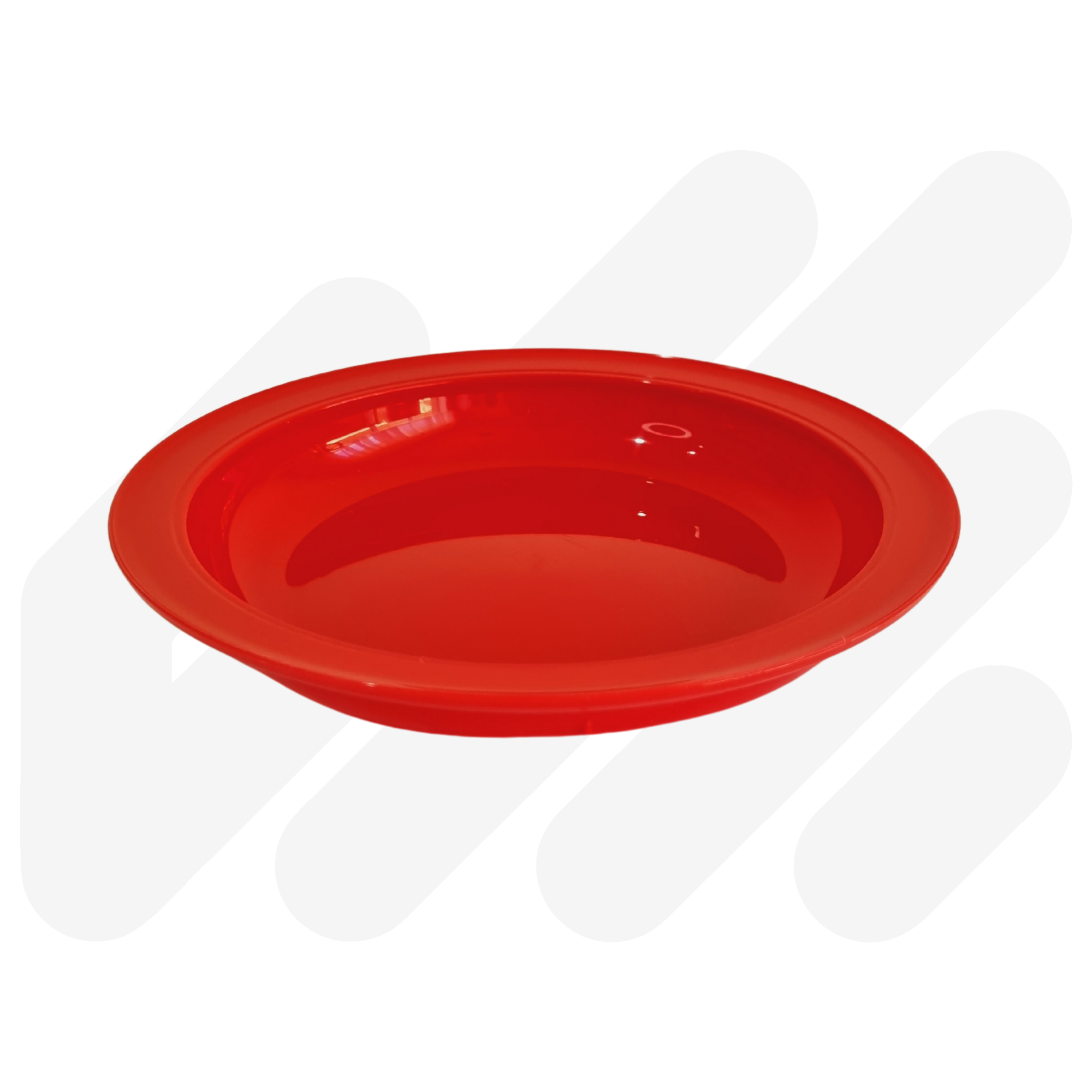 Plate with an inner edge to assist with independent eating. Plate comes with a slip resistant base. Dishwasher and microwave safe.