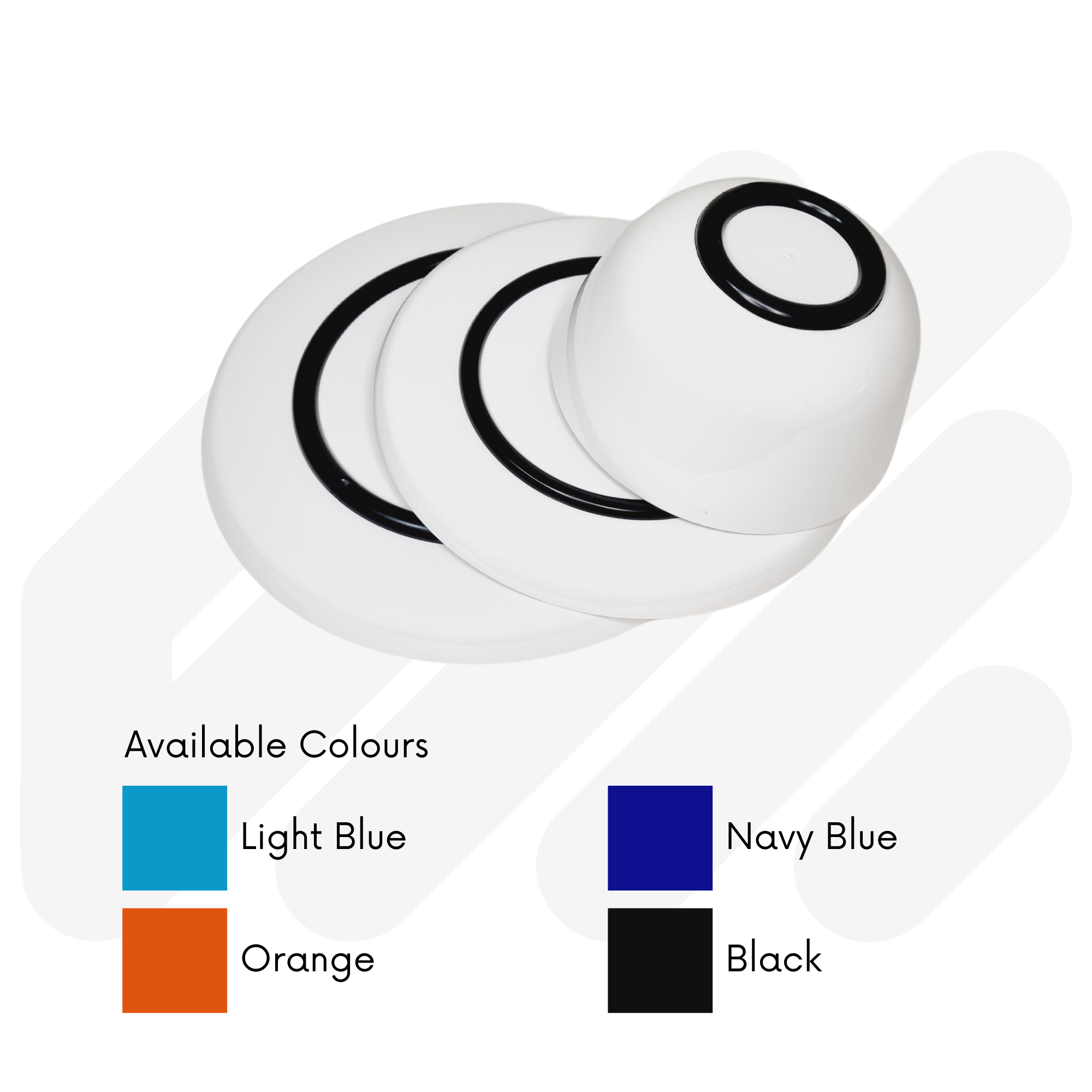 Black colour Non-Slip Ring is held in stock. If a different colour ring is preferred please contact us. Plate Body is White. If a set or greater quantity is required, please contact us for details.