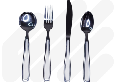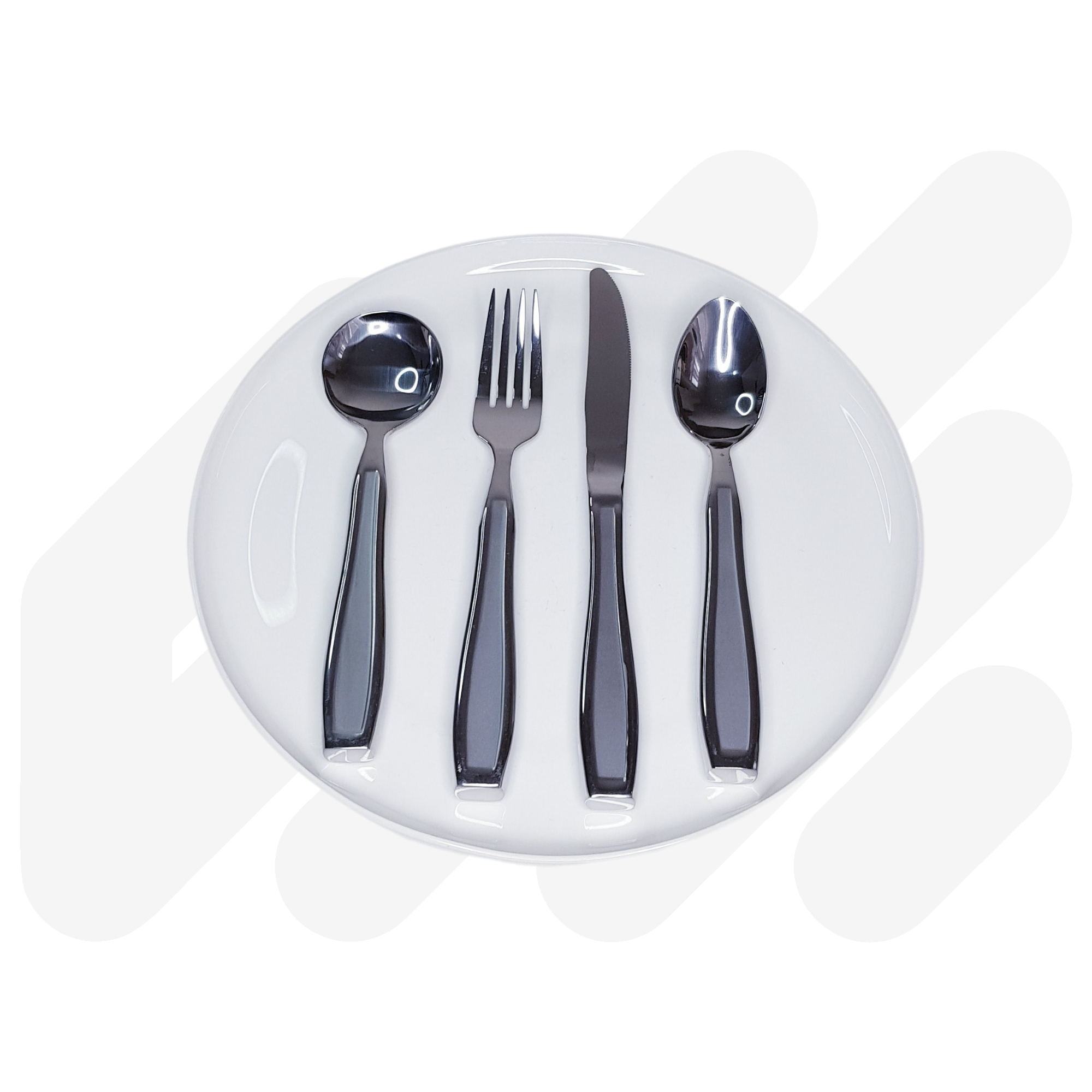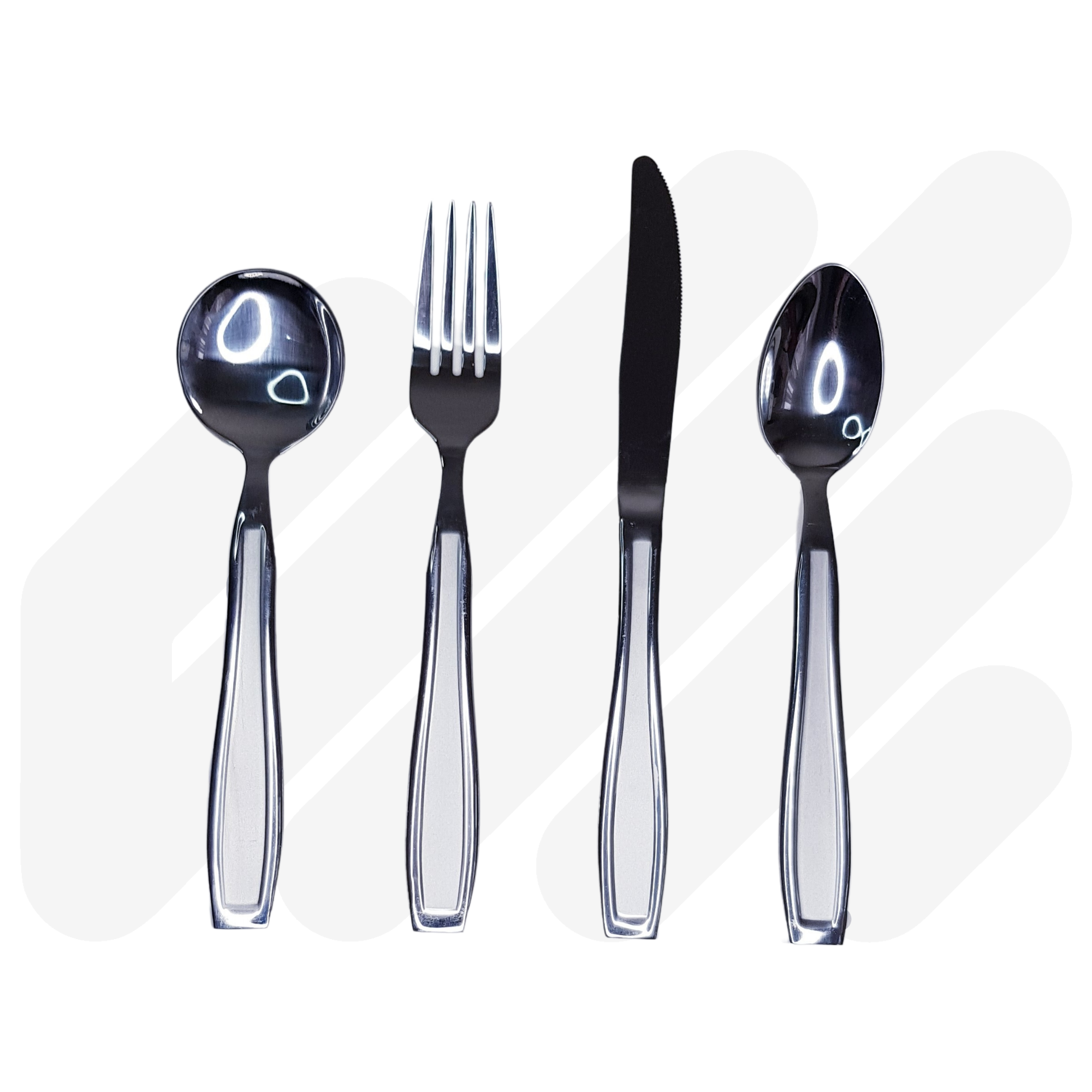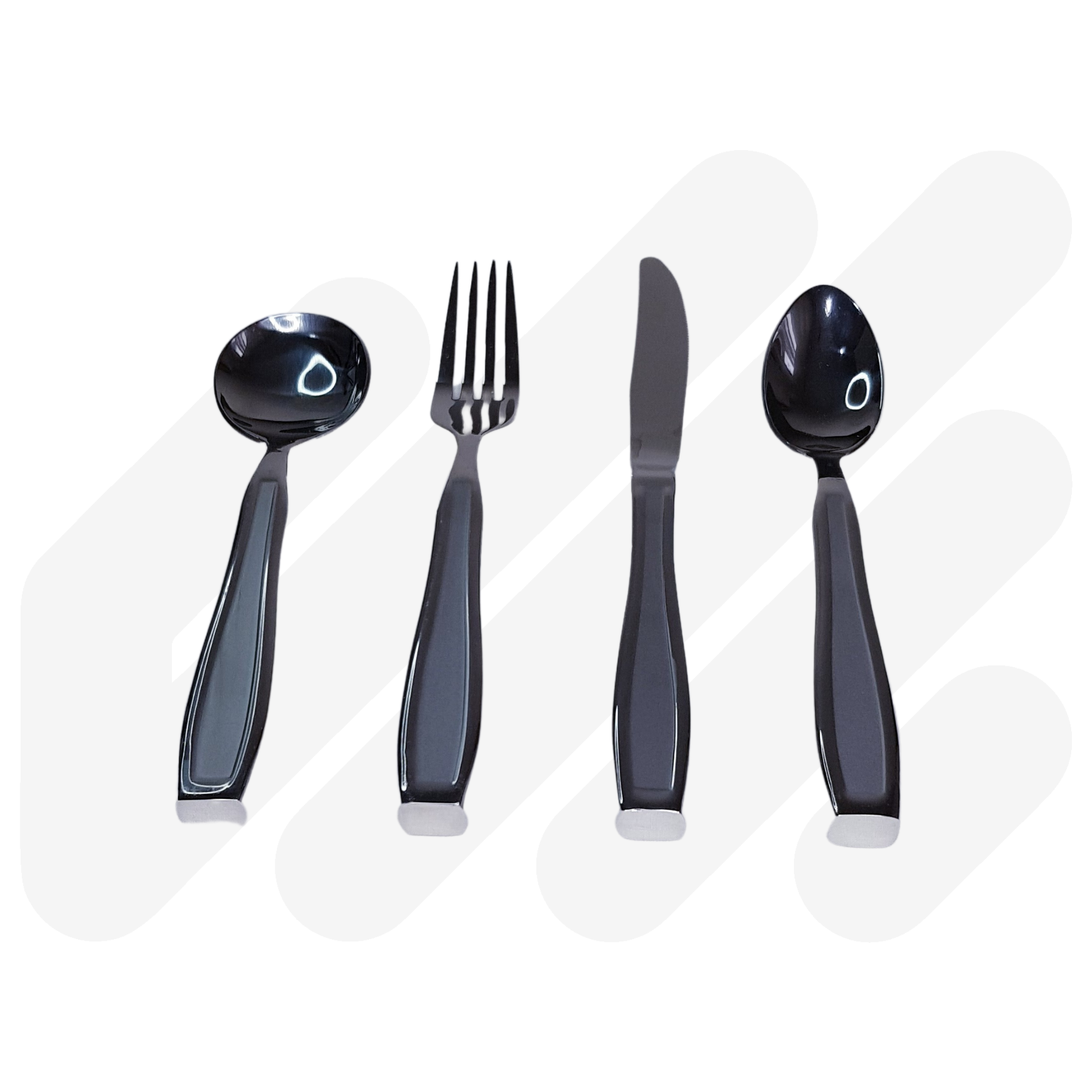 Includes: 1x Weighted Fork, 1x Weighted Knife, 1x Weighted Tablespoon, 1x Weighted Soup Spoon